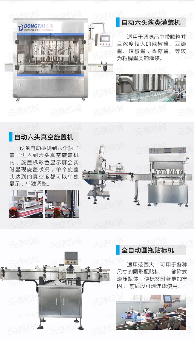 自動化醬料灌裝旋蓋貼標生產線優(yōu)勢:
