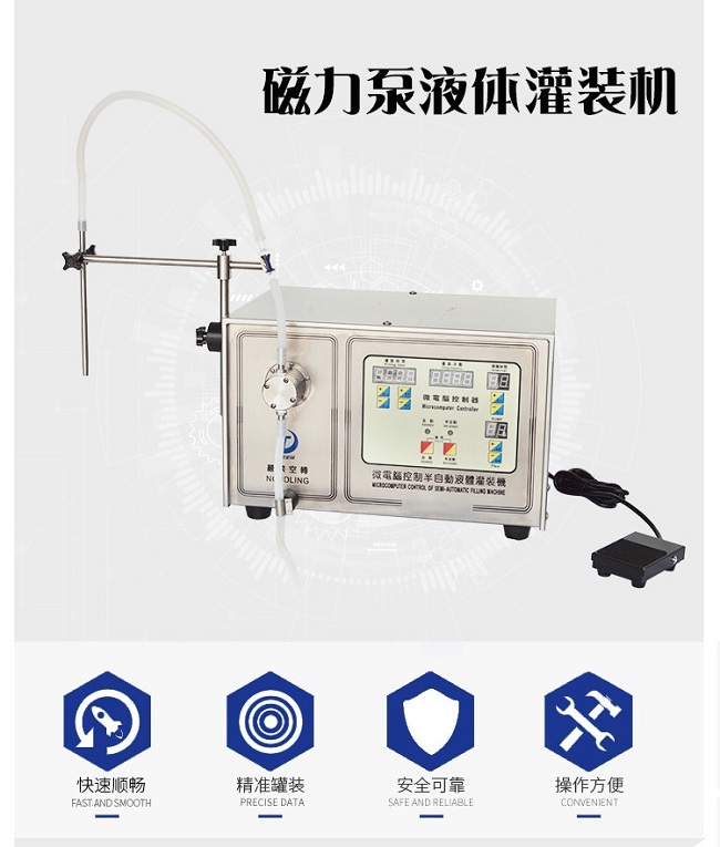 除此之外,液體灌裝機(jī)的上壓塊可以與泵頭本體分離,裝卡軟管方便,根據(jù)用戶需要,可串接多個(gè)泵頭,外形美觀、考究,結(jié)構(gòu)緊湊、流量寬泛。方便OEM方式配套應(yīng)用。具有定時(shí)功能,可實(shí)現(xiàn)半自動(dòng)分配、灌裝具有半電流鎖定功能。這樣的灌裝機(jī)滿足很多生產(chǎn)需要,現(xiàn)在以及未來(lái)迅捷機(jī)械還會(huì)研發(fā)出更多的灌裝機(jī)設(shè)備,讓我們來(lái)期待吧!