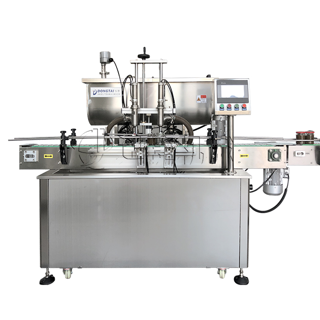 3、 該設(shè)備在設(shè)計(jì)上大大縮短了下料斗到灌裝頭的灌裝距離,克服了含油量大的物料(如:含芝麻粒的辣椒油)在灌裝過(guò)程中出現(xiàn)的有些瓶油多,有些瓶醬多的灌裝誤差大的缺點(diǎn)。