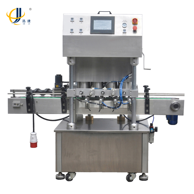 玻璃瓶馬口鐵真空旋蓋機(jī)的使用正是為了罐頭類產(chǎn)品的旋蓋包裝。其設(shè)備優(yōu)點非常突出: